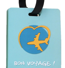 Etiquettes de voyage souple et incassable de chez Travel Earth (peut aussi servir pour le sac de consigne sur une course)